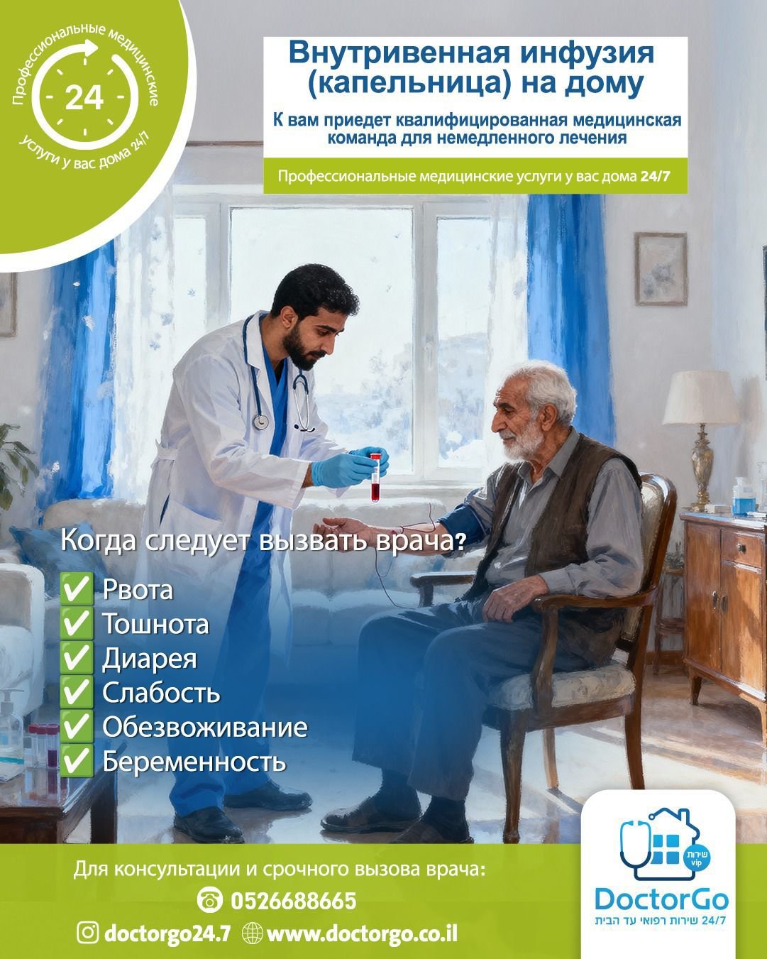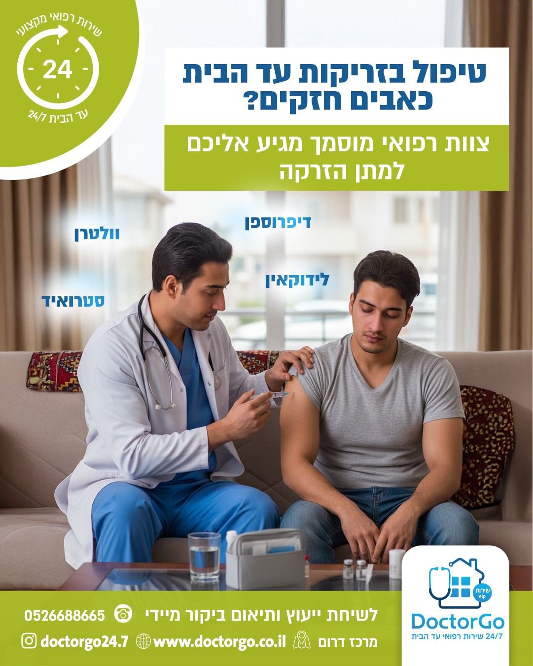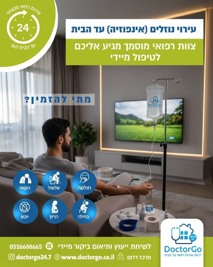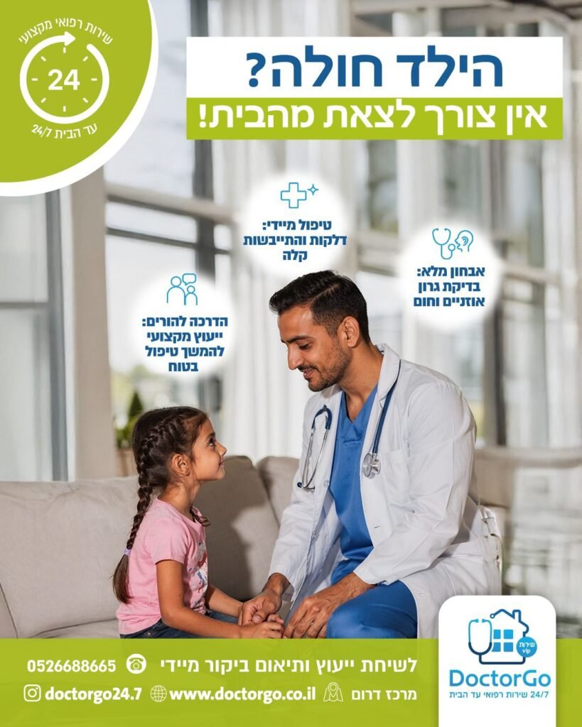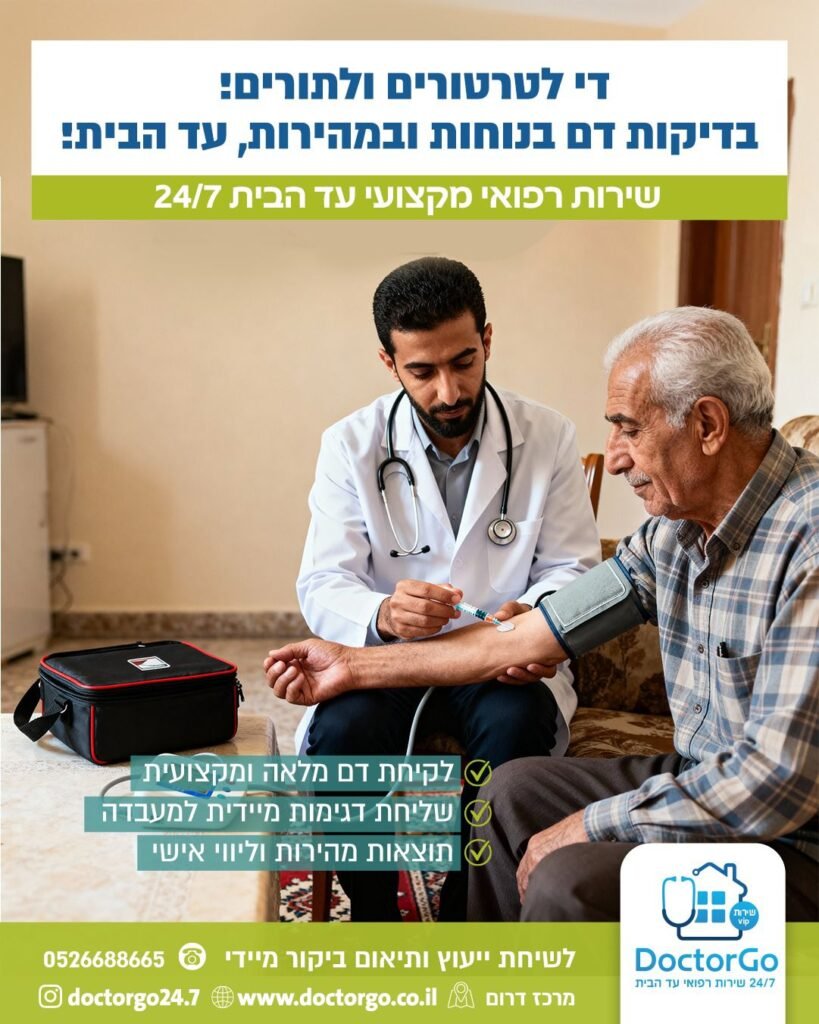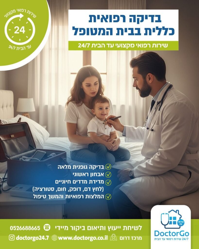 אנו מעניקים טיפול רפואי מקצועי ונגיש בלי צורך לצאת מהבית. צוות רופאים ואנשי מקצוע מגיע עם ציוד מלא לביצוע בדיקות, פרוצדורות וטיפולים מותאמים אישית – לילדים, מבוגרים וקשישים. השירות כולל בדיקות כלליות, טיפול תרופתי, בדיקות דם ומהירות, טיפול בפצעים, עירויים ועוד. המטרה: לספק רפואה איכותית, מהירה ונוחה, בסביבה המוכרת והבטוחה של המטופל.